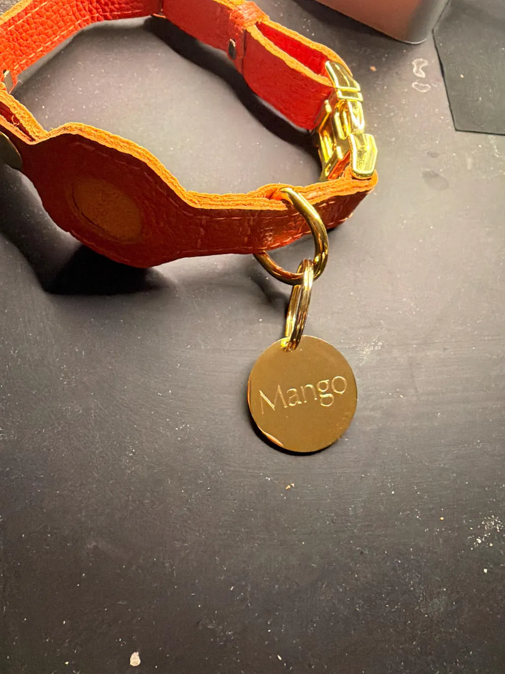 - What’s Included: One 30mm round gold stainless steel dog tag, complete with split rings and a lobster clasp for secure attachment.